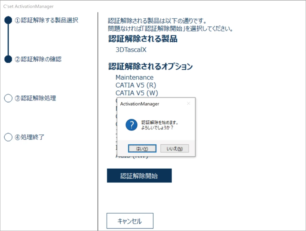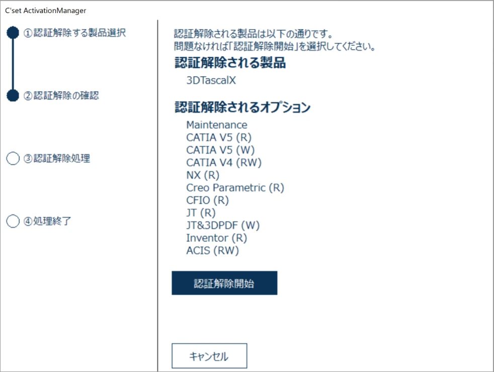 [認証解除開始]ボタンをクリックします。