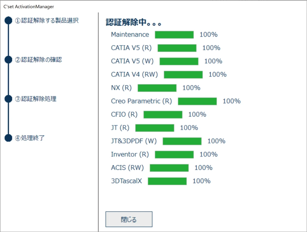 全て100%になったら[閉じる]ボタンをクリックします。