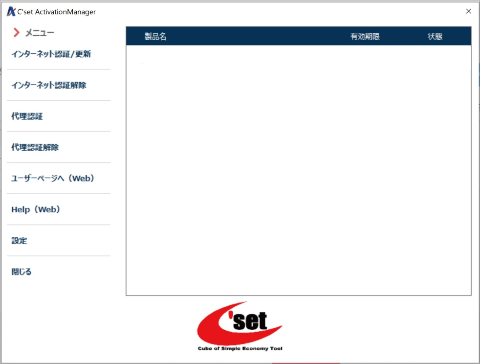 Windowsスタートメニューから[すべて >]/[N]/[NetLicense]/[C’set ActivationManager]