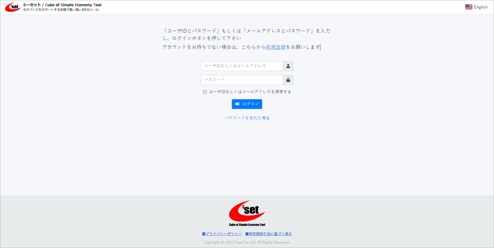 ユーザページにユーザIDとパスワードを入力してログインします。