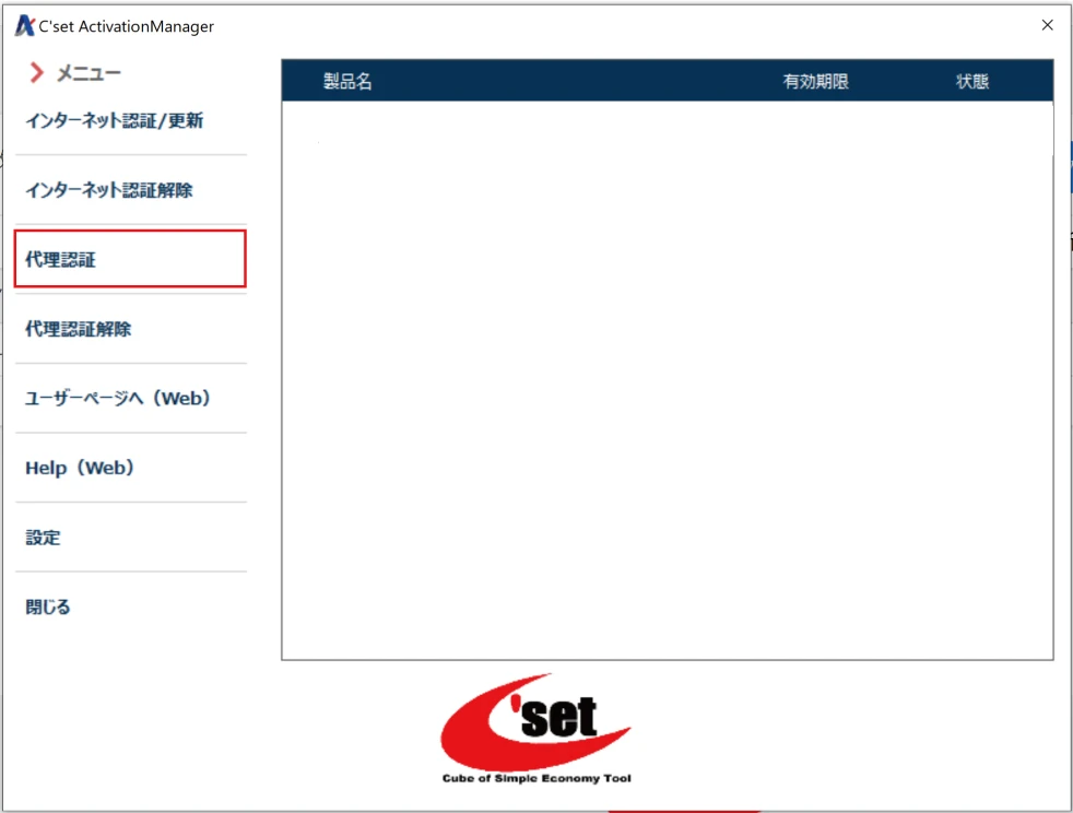 代理認証した製品名が表示され認証処理が完了しました。