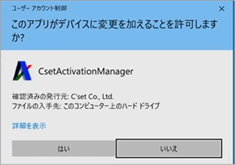 [ユーザ アカウント制御]が表示された場合は、[はい]をクリックします。