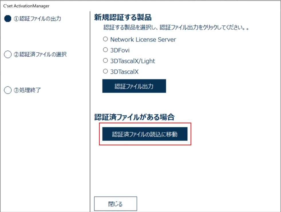 [認証済ファイルの読込に移動]をクリックします。