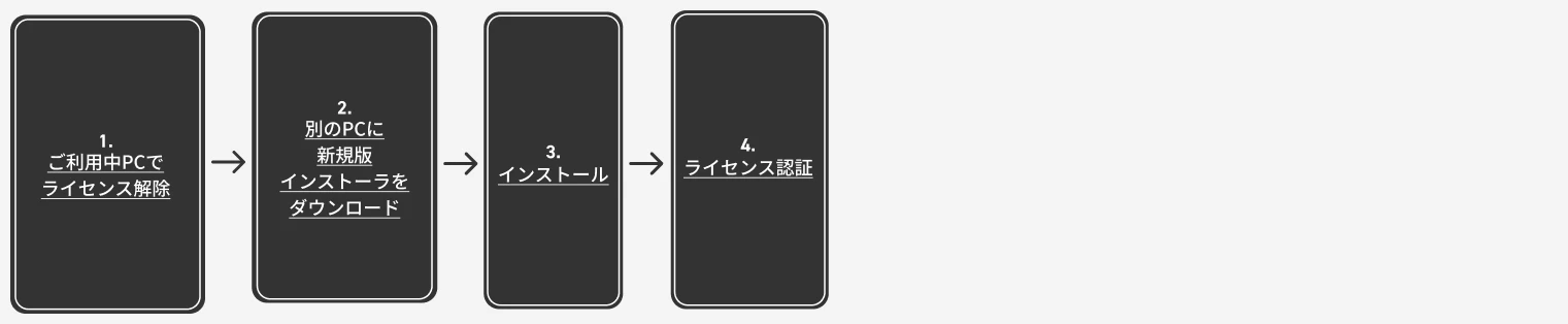 ライセンス解除※製品を他のPCでライセンス認証する場合(リプレースなど)に必要です。