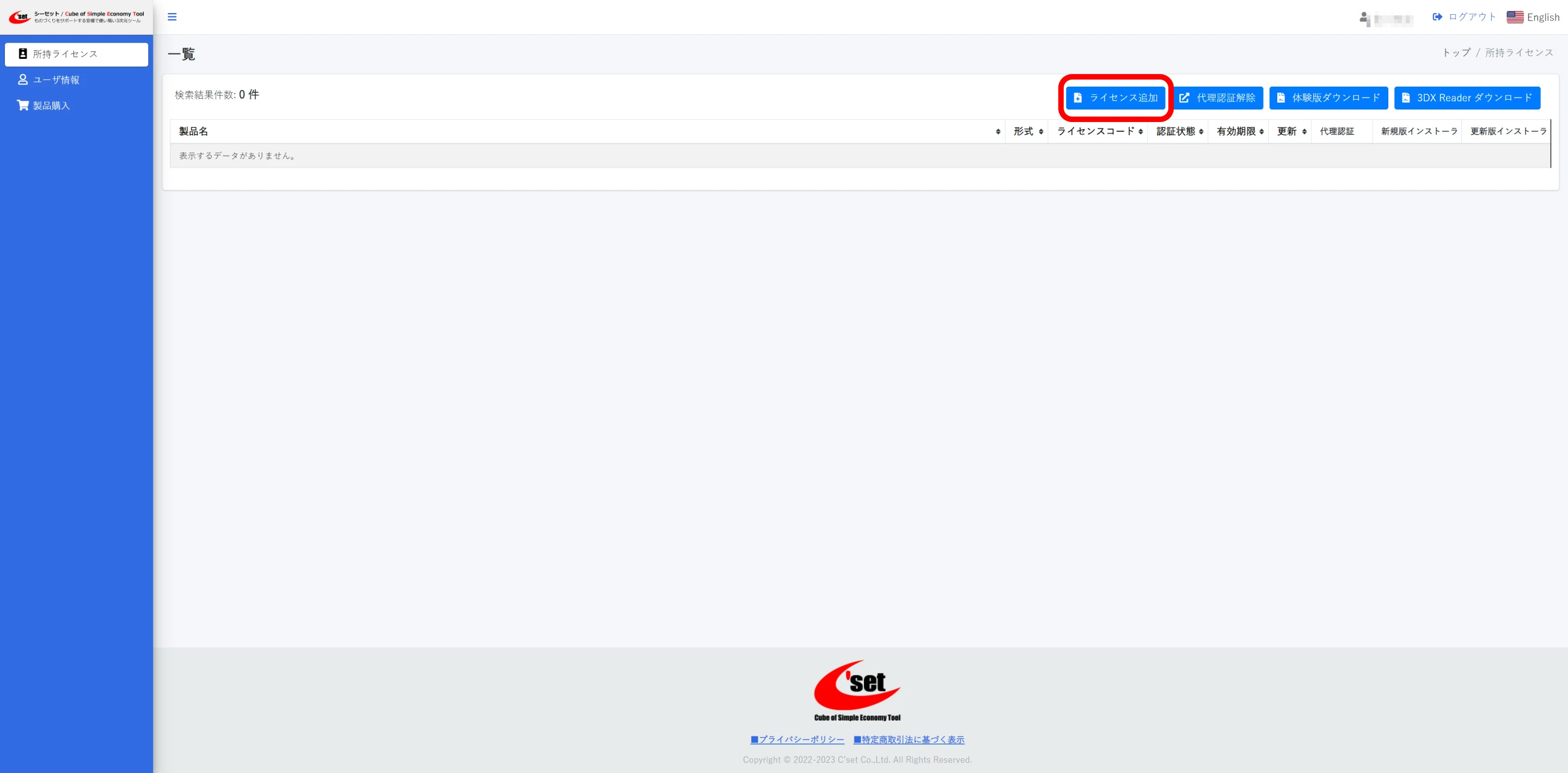 所持ライセンスの一覧が表示されます。