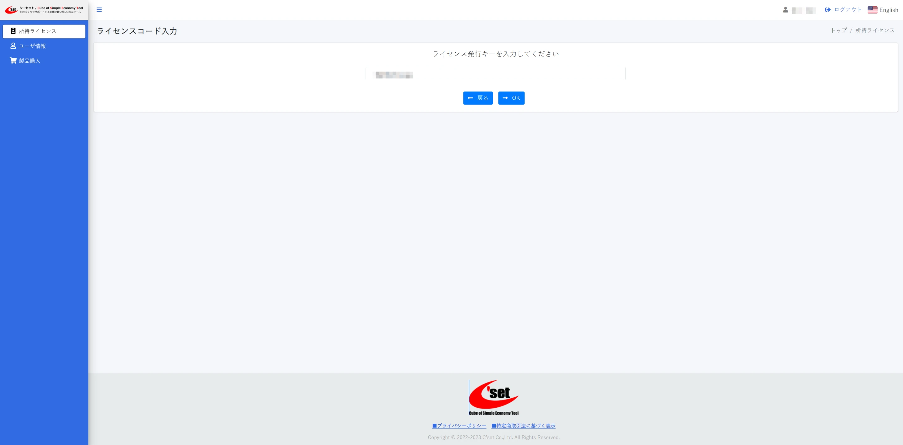 ライセンス発行キーを入力し[OK]ボタンをクリックします。