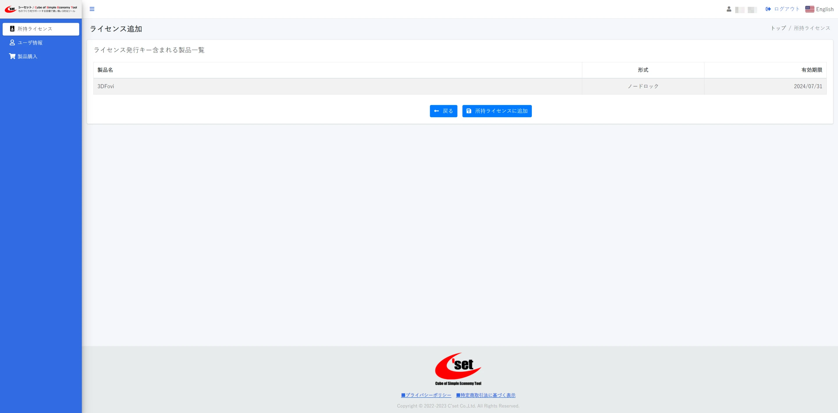 [所持ライセンスに追加]ボタンをクリックします