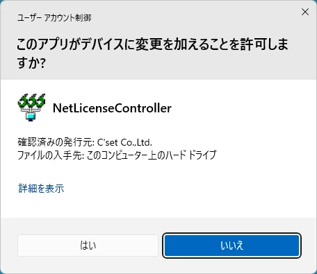 「ライセンスサーバに接続出来ませんでした。」が表示されて[OK]をクリックすると「NetLicenseController」が起動します。