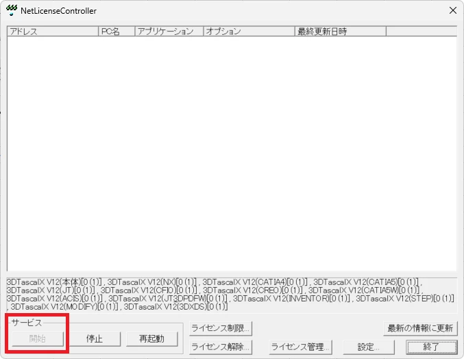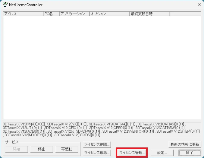 ※ 3DTascalXフローティングはライセンスサーバ(Network License Server)をインストールしているPCで操作します。